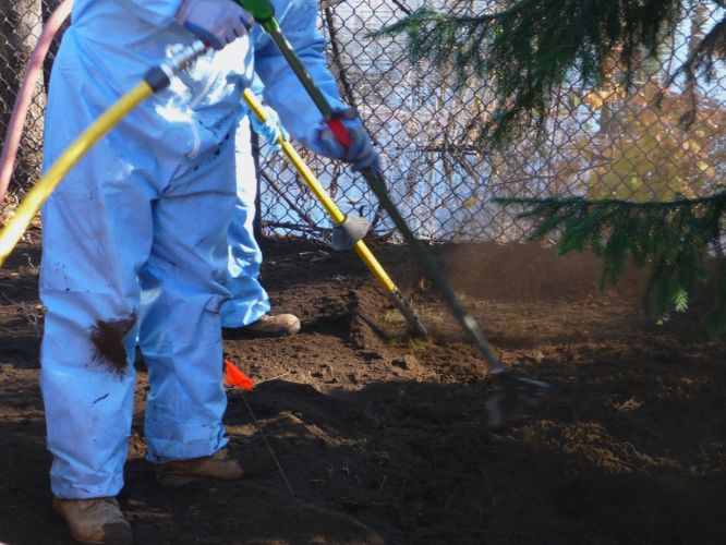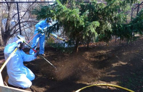 So Sonia and her boss Rich Falzone equipped the crew with an Air Spade and an Air Knife, coveralls, eye protection, ear protection, and respirators, and began to direct the relocation of trees.