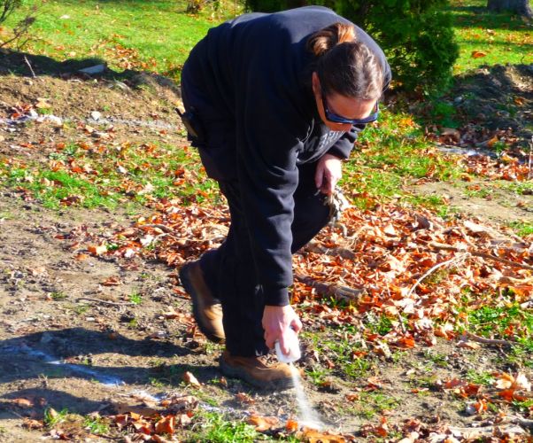 Sonia Baerhuk marking the new home of a 15' Norway spruce to be relocated.