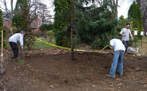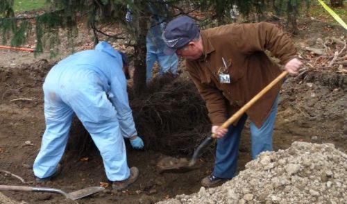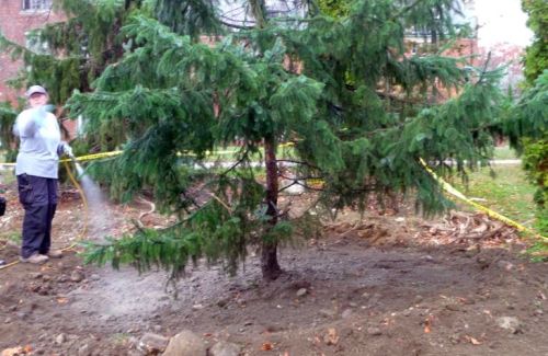 To continue yesterday’s post on the bare-root transplanting of a Norway spruce at the Perkins School for the Blind in Watertown, MA: