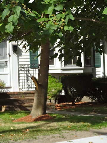 Bob reports that the tree has experienced some stress from the move, but he expects it will equilibrate crown and root growth and leaf out well next year.  We’ll keep an eye out for more pix next year, to check its progress.